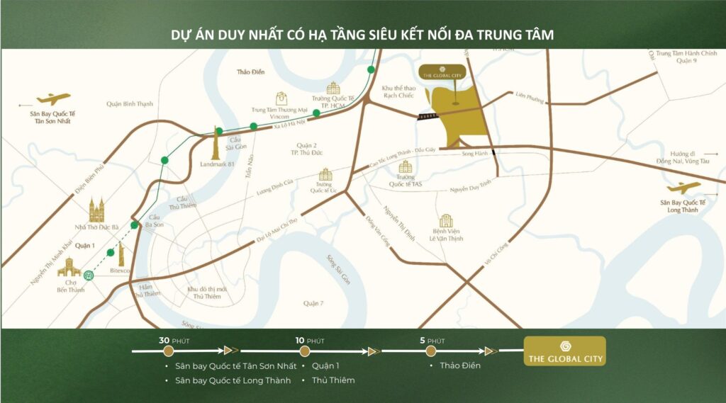 The Global City là khu trung tâm mới toạ lạc ở vị trí vàng, nhưng vẫn mang đến đầy đủ một hệ thống tiện ích theo tiêu chuẩn Quốc tế thiết kế bởi Foster & Partners.